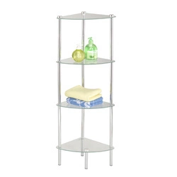 Regał łazienkowy narożny, szklany, chromowany 105 cm.